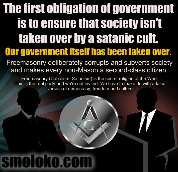 Secret Societies run the world from behind the scenes. Free Masonry was inflitrated by the Illuminati in the 1700’s and corrupted. 99% of Free Mason’s do not have a clue!