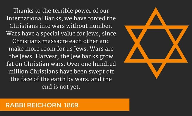 It is no coincidence that the US has almost been at a continous war since 1913. The Filthy Zion useless eating inferior Trash makes money while killing a lot of “Goyim” or Gentiles.