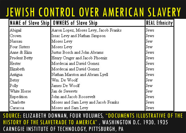In our current history books there is no mention of any involvement of ashkeNAZI yids in the slave trade. It just mentions how “whites” were so cruel to them. The agenda behind this is to get Black People to be racist against whites, and to deflect the blame from them.