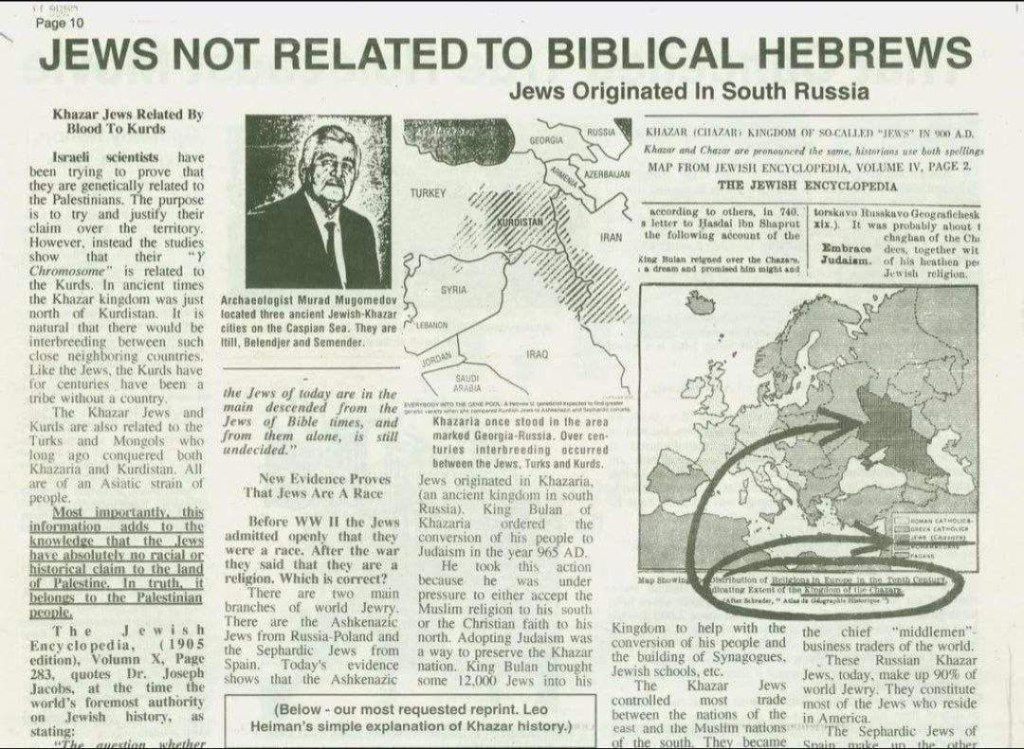 It only takes a little bit of research to figure out that the Khazarian’s who were known as name stealers and converted in the 8th century to supposed judaism but are still atheists typically are NOT related to the jews in the bible in the least.