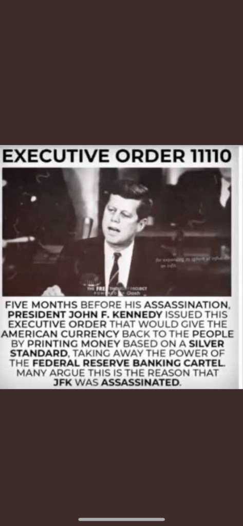JFK while being one of the illuminati families actually so he has the blue blood but had a conscious and talked openly about the satanic zionist conspiracy, issued money directly from the US Treasury (as stated in the constitution) with executive order #11110, wanted to end the private bank federal reserve criminals and break up the Rothschild CIA domestic terrorists. Satanic pedophiles do not like anyone with morals so JFK was killed.