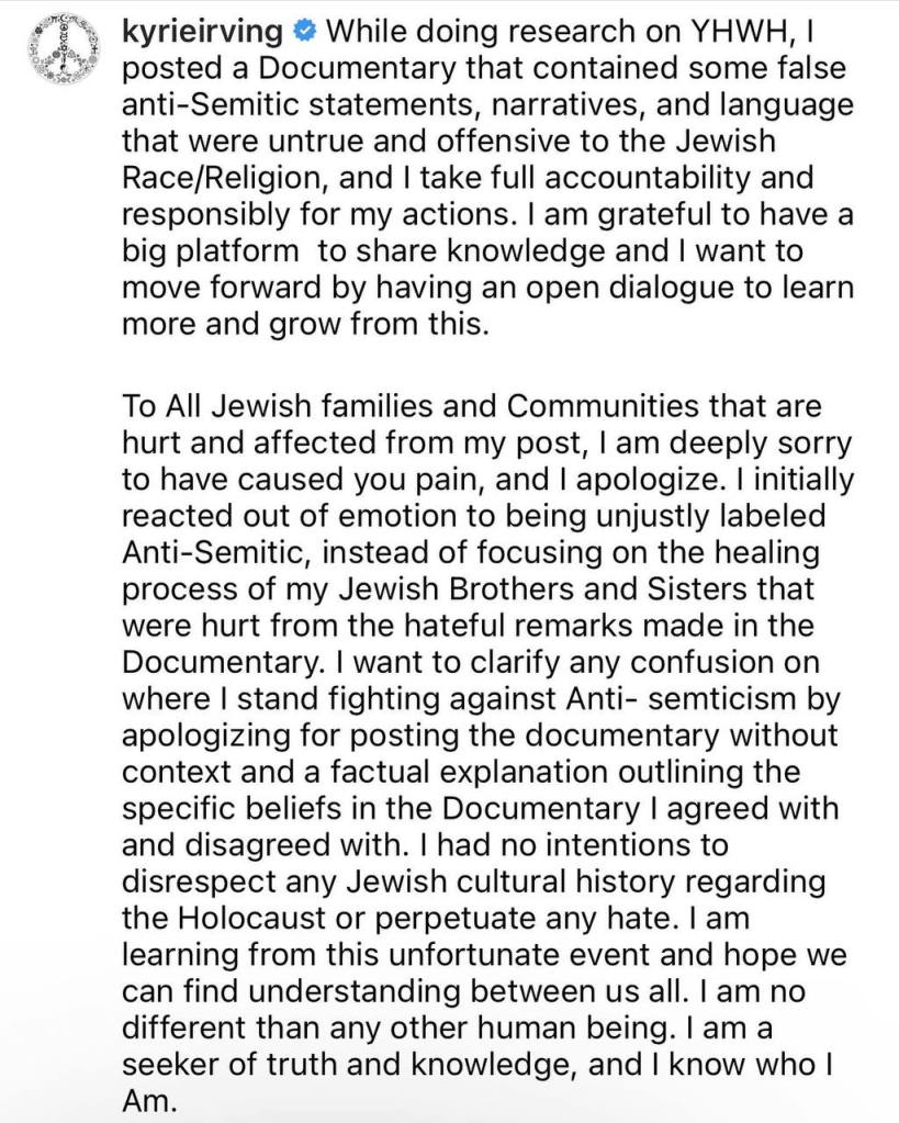Like Kanye West or Ye has been financially penalized by the Pharisee money changers, so Kyrie Irving is being fined $500,000 and suspended for 5 games by the fragile ego faulty inbreds.