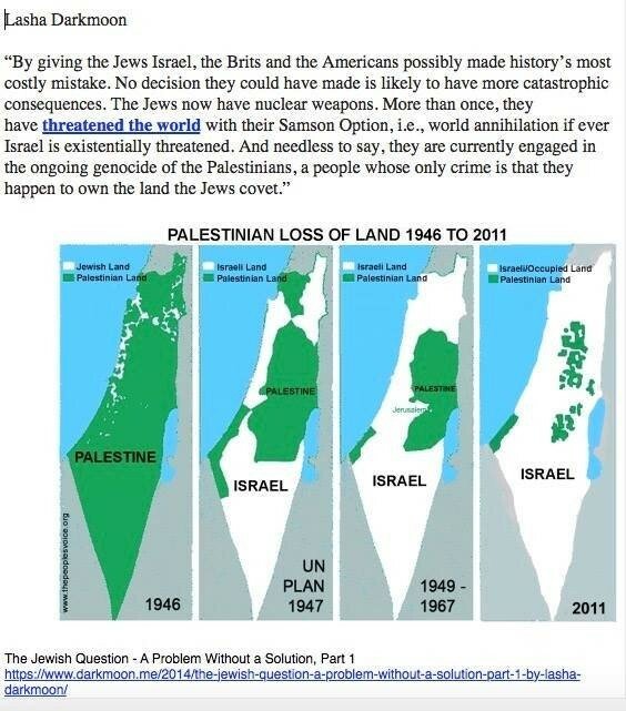 The current Racist supremacist genocidal state of the synagogue of satan ItsaHELL is heinously murdering innocent Palestinian women and children which makes it impossible to call oneself a Christian if you support this massacre. Yet deceived Christian’s are supporting this who have been programmed thru infiltrated organized religion and regurgitating what they have been programmed with that the jews are God’s chosen people. It is quite obvious to anyone with a functioning brain that God did not chose LIARS, murderers and thieves as forget the joo term, especially when they are not nor are they semitic which makes the false canard anti-semitic a hollow trope.