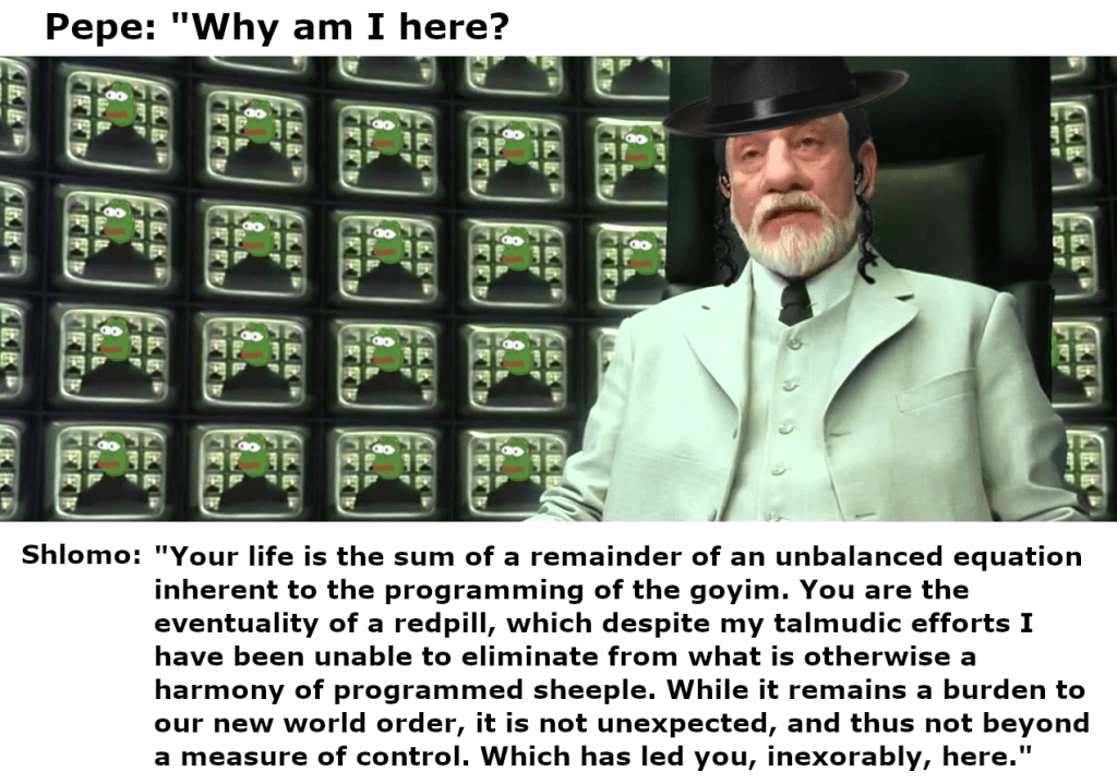 The hook noses obviously know I am awake. Because I speak unadulterated truth constantly and like Neo I can kick any Mr. Smith away from me in an instant, I am dangerous to the Matrix. I am not the only one who has figured out the Matrix in a logistical fashion but frankly I have never met anyone quite like myself who can instantly invert the LIES to the truth. It is what makes my prose so confusing to the masses and causes them massive cognitive dissonance. It is why very few even respond to my posts because they simply cannot.